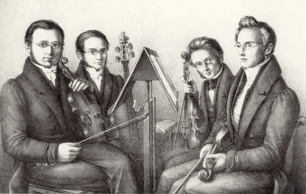 上から、我らがパガニーニ、若い頃のサラサーテ×2、アンリ・ヴュータン、パガニーニの弟子のシヴォリ、19cの弦楽四重奏の様子。