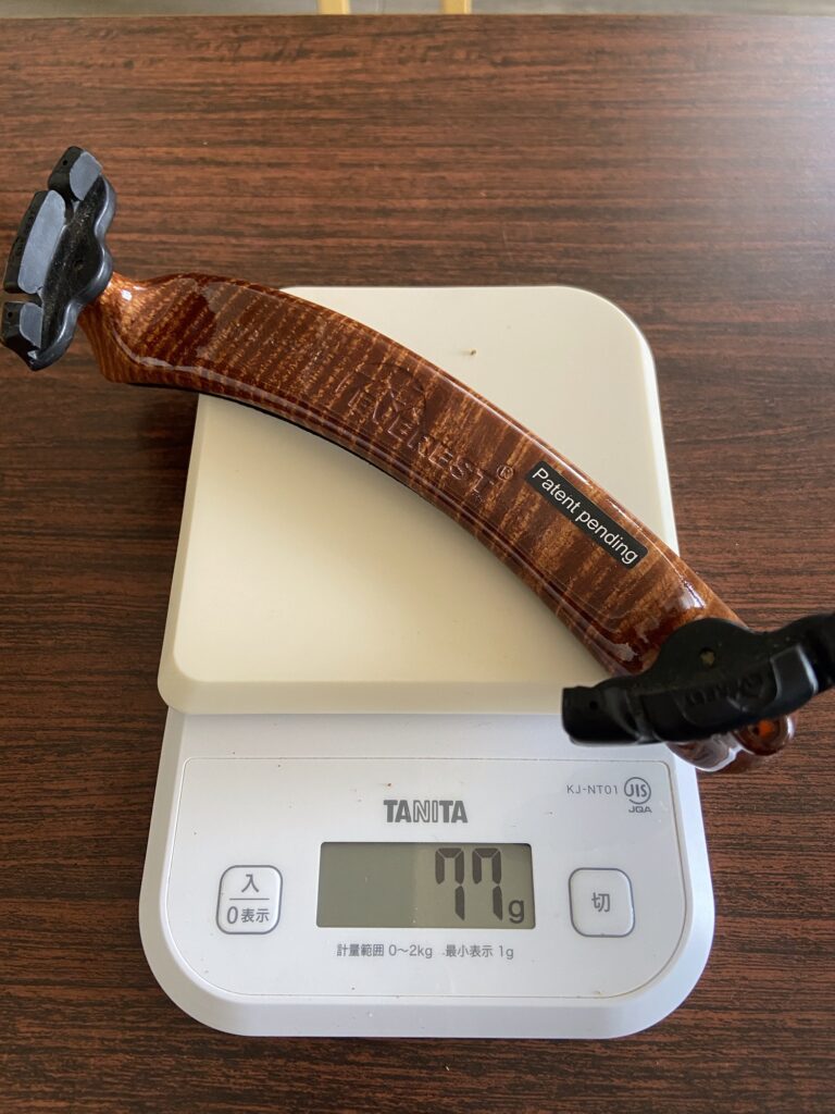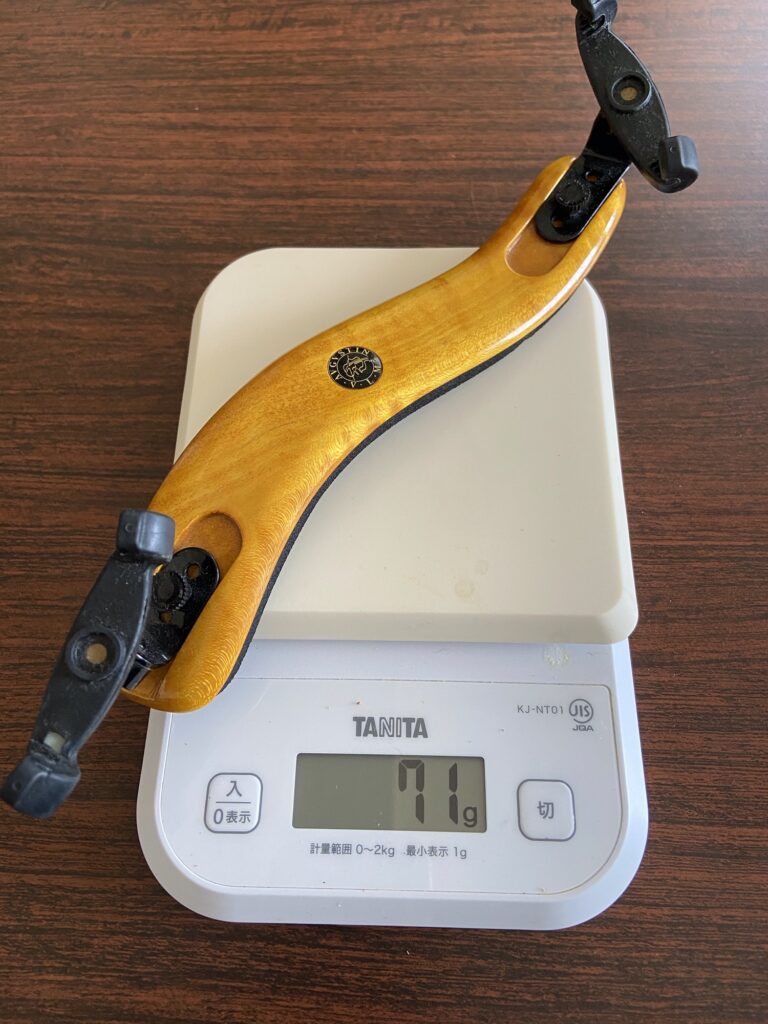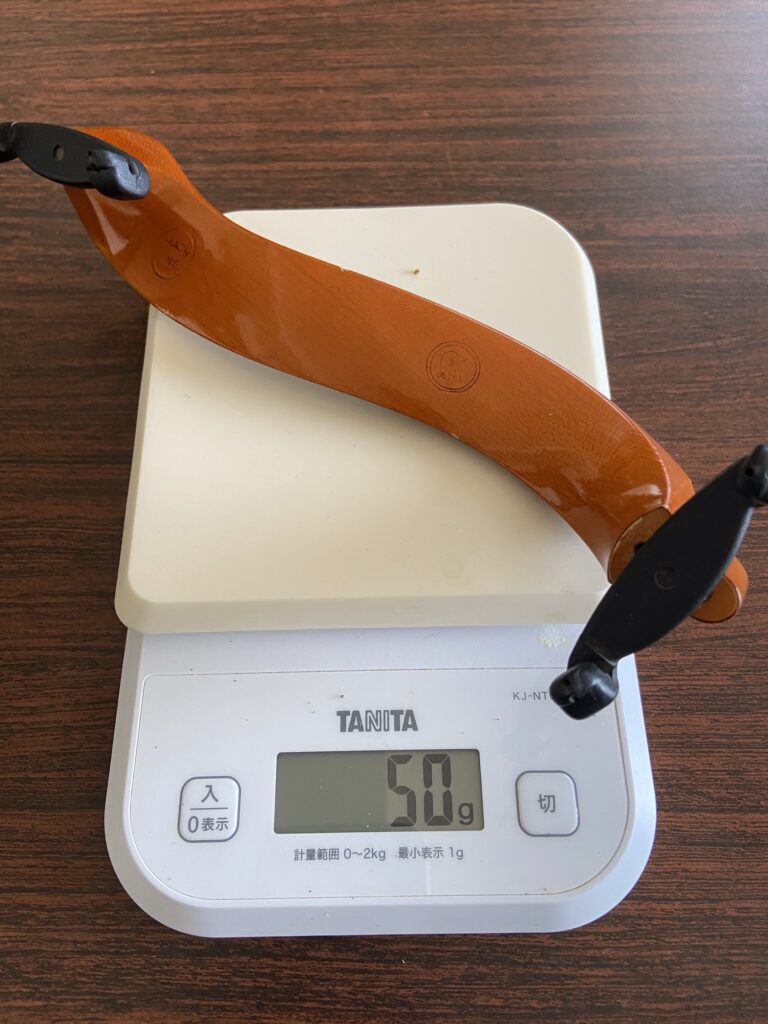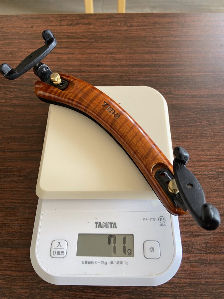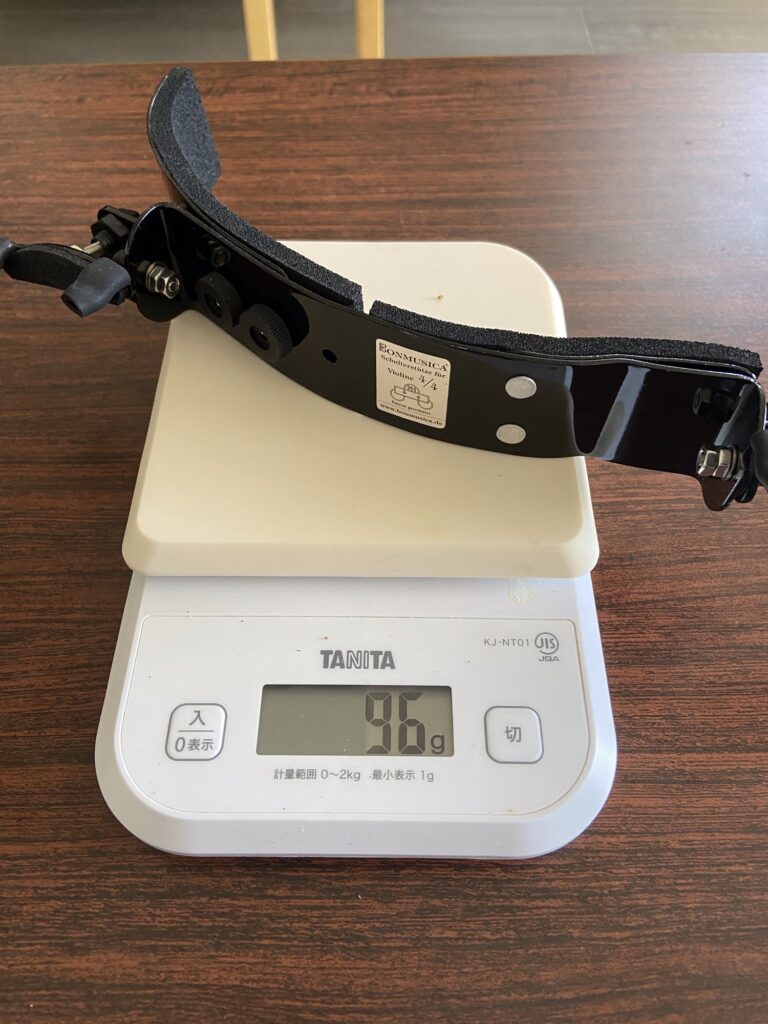 これが肩当てをつけない一番の理由。ほとんどのものは70〜80g前後あって顎当てと合わせると120〜150gの重さ。